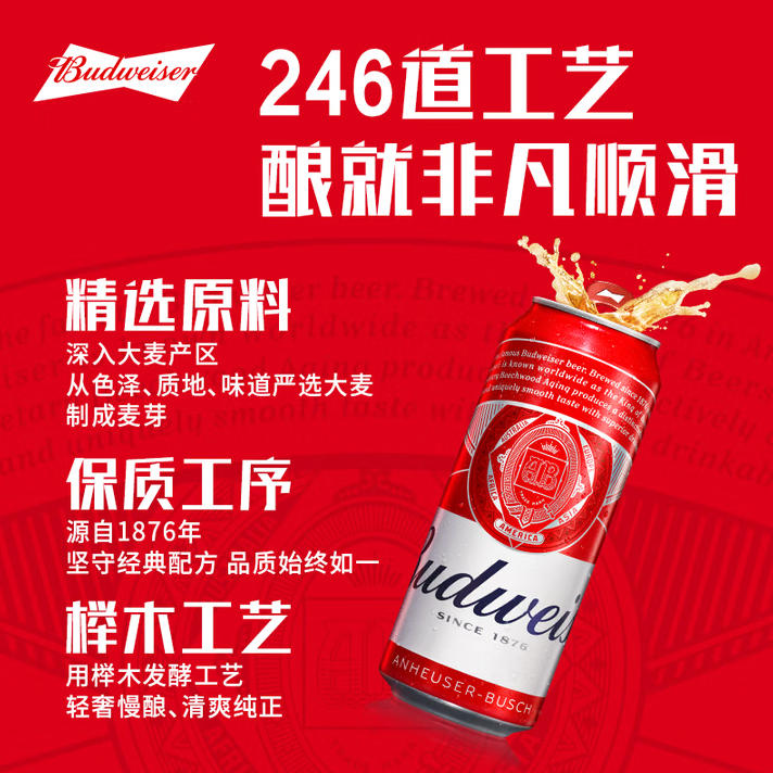 百威(BUDWEISER)经典红罐 淡色拉格啤酒 浓郁麦香 聚会聚餐 中秋送礼 450mL 15罐 牛皮纸箱装